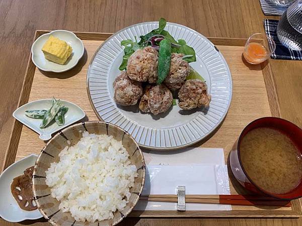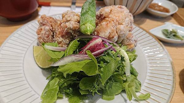 肚子餓的人沒有時間附庸風雅,立馬點餐。餐點和飲品的選擇都不多,我點的是「龍田揚炸雞定食」$340,阿郎點的是今日特選料理(鹽味烤雞腿排)定食 $320,另外加120元可以升級套餐,可以加點飲料與甜品,我們雖然餓,但要控制體重,不敢加點,阿郎只點了一杯「浪乃音酸桔榨」$180來佐餐。餐點都是現點現做,需要15-20分鐘,我們就趁這空檔拍了些照片,食物一端上來,又是一陣猛拍。